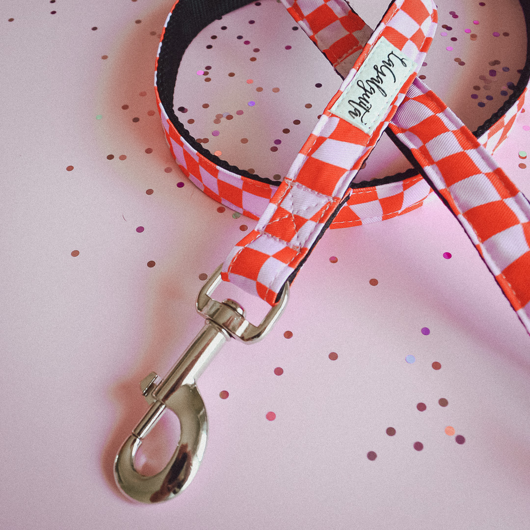 Correa confeccionada a mano con nylon forrado de resistente y suave tela personalizada con estampado de diseño propio.